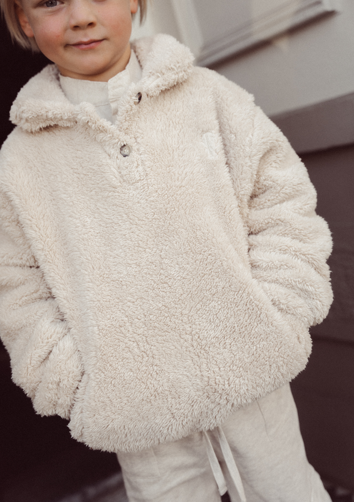 Wrap your young one in the warmth of the Teddy jumper jacket, the ideal companion for autumnal beach strolls. This jacket marries sumptuous comfort with a chic design, ensuring he stays stylish as the sun sets over the horizon. Elevate his fall/winter collection with this enchanting layer that captures the essence of effortless elegance.