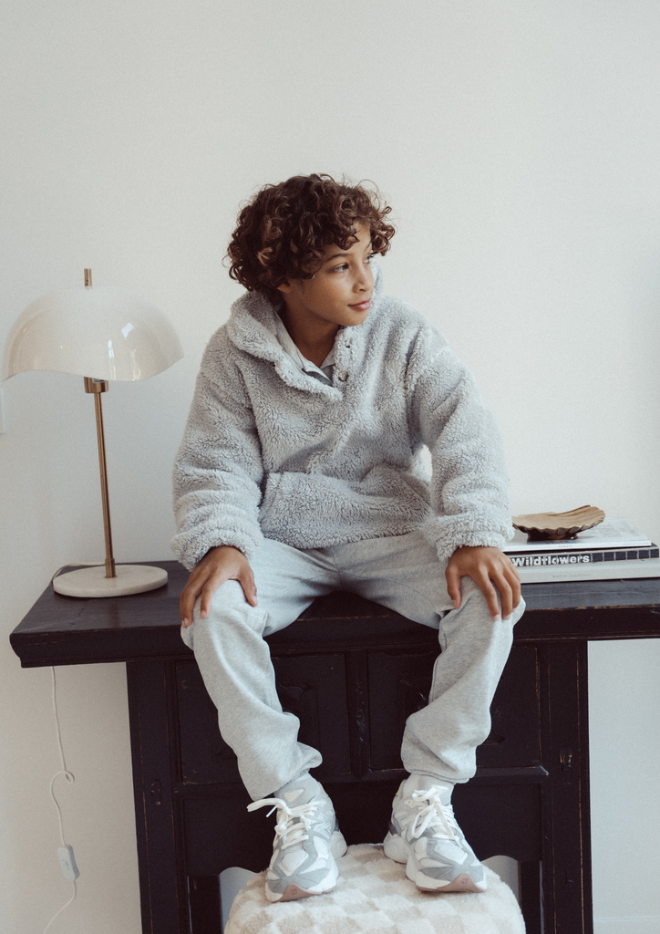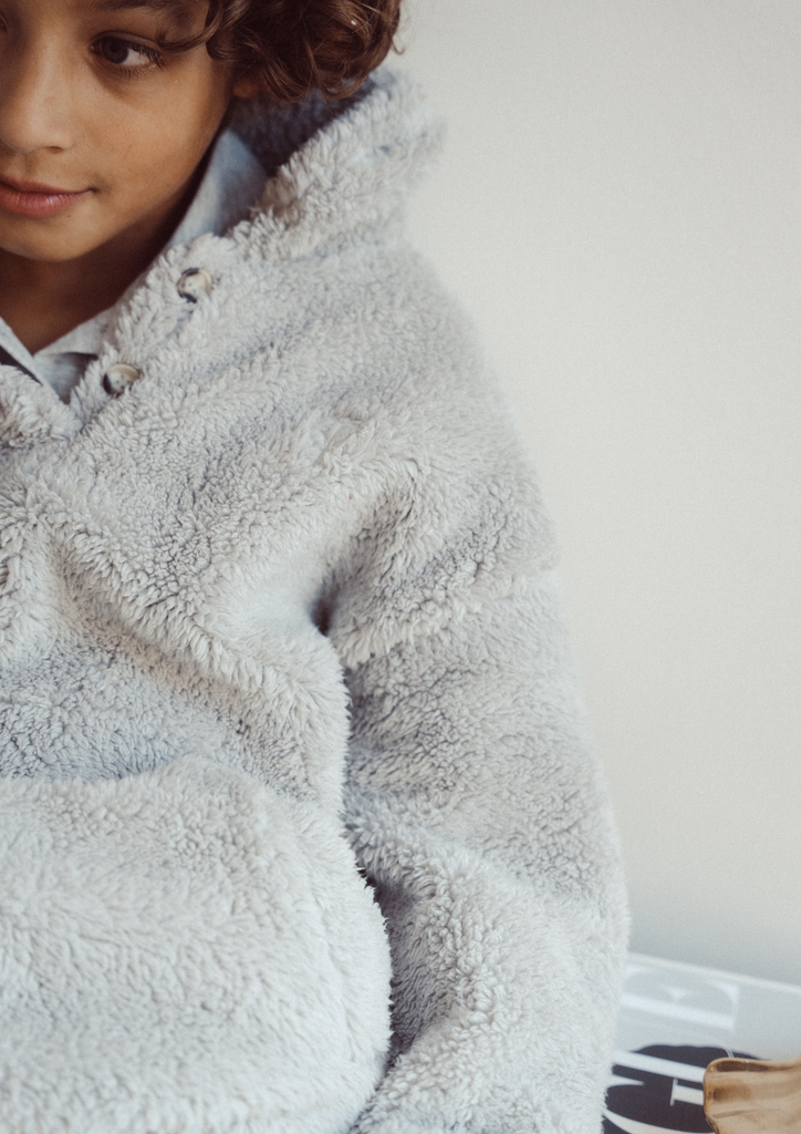 Wrap your little one in the enchanting warmth of the Teddy jumper jacket in grey. This charming piece marries comfort with contemporary elegance, perfect for those crisp fall and winter days. Let their style flourish as they transition effortlessly from playful adventures to cozy gatherings, embodying the spirit of the season.
