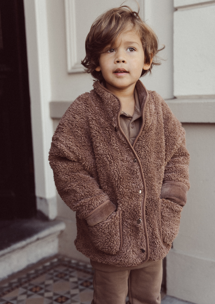Embrace the beauty of the season with the Two in One Teddy Jacket in rich brown, a must-have from our boys' fall/winter collection. Its soft teddy fabric envelops you in warmth while crafting a stylish silhouette perfect for any occasion. Let this versatile outerwear be your charming companion, bringing elegance and comfort to your wardrobe.