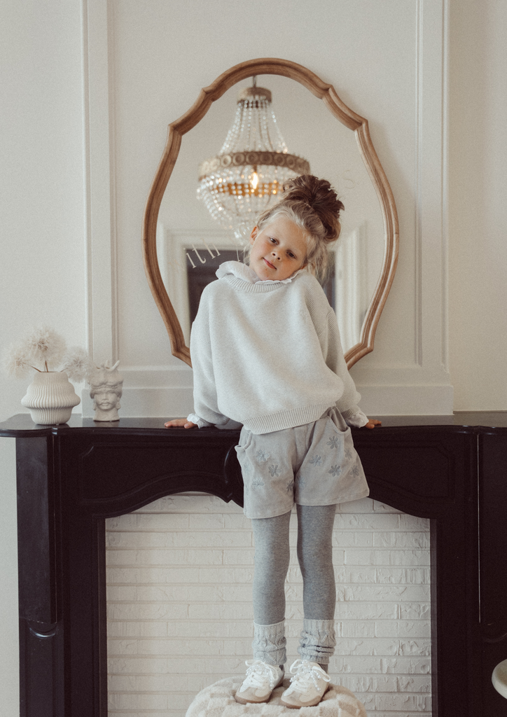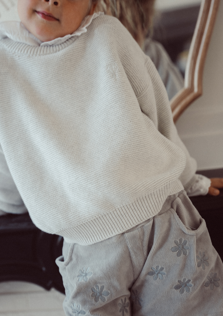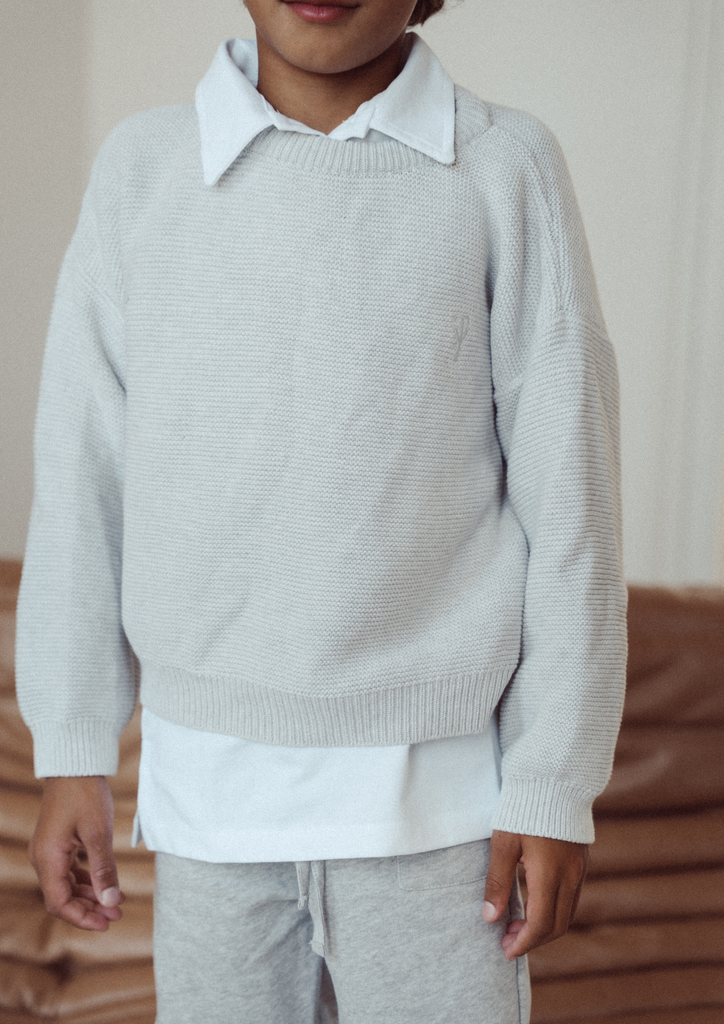 Wrap your little one in the warmth of the Noah knitted jumper, a sophisticated piece in timeless grey. Perfect for layering in cooler months, it effortlessly combines comfort with style, making it ideal for both casual adventures and snug evenings indoors. Fall in love with the charm and versatility of this essential addition to the boys' collection this fall/winter.